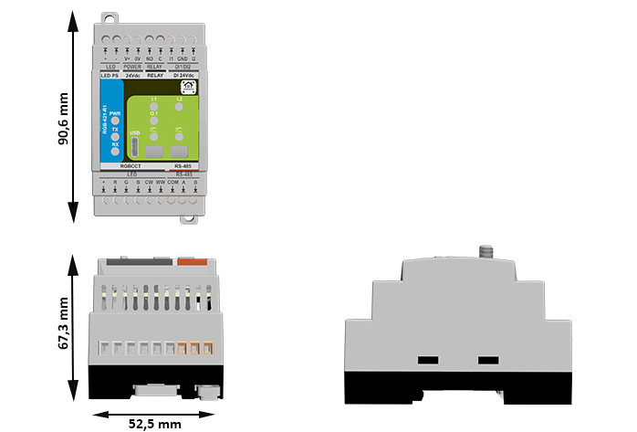 The RGB-621-R1 is a configurable smart RGB+CCT LED controller designed for architectural lighting, home automation, ambient lighting, and industrial control. With 5 high-current PWM outputs for RGB and Tunable White LED control, 2 isolated digital inputs, and 1 relay output, it offers professional lighting control and seamless integration via Modbus RTU (RS-485). Ideal for smart homes, commercial lighting, and automation systems.